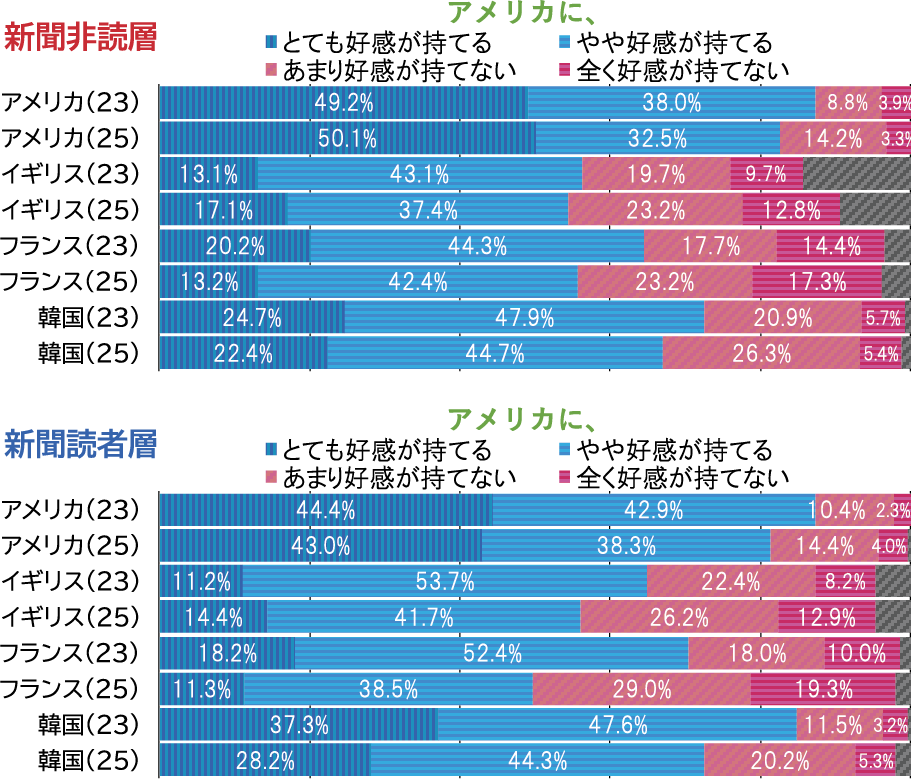図表5 新聞読者層と非読層のアメリカへの好感度の変化